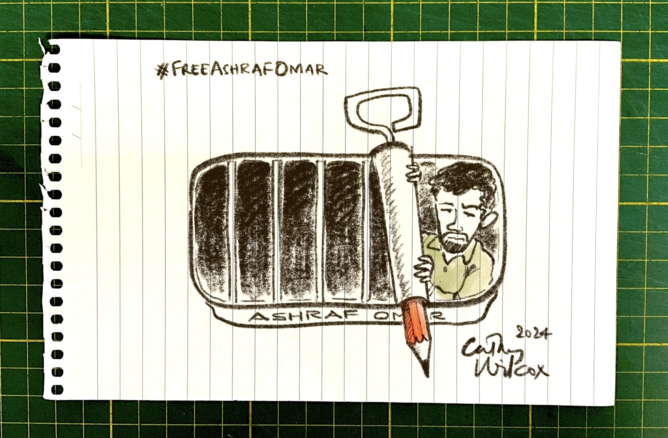 On the first anniversary of his arrest, international cartoonists’ & free expression organisations call for the release of Ashraf Omar.